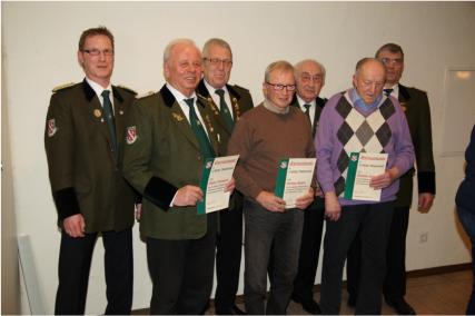 50 Jahre Mitgliedschaft: Günter Brockmeyer, Karl-Heinz Vossel, Franz Diekmann, Hans Vossel, Gerhard